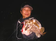 10月2日、夕方5時に渡船。沖堤に到着した時には日も暮れ始め、クロソイ、マゾイ、ハチガラがポツポツと釣れる状況。