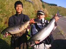 10月19日2年ぶりのサケ釣り!前日にたじま君が良型のメスを釣ったと聞き、いてもたってもいられず私も同行させてもらいました!結果、自分以外はみんなキャッチ!私もヒットしましたがヘタクソなためバラしてしまいました (ToT) たじま君と永井さんは良型のメスでした!
