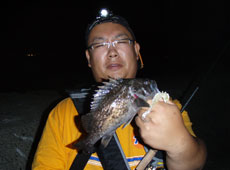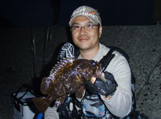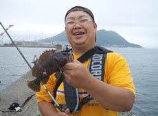 7月7日、夕方5時に渡船。日が暮れるまでは食いが渋いながらもアブラコ(アイナメ)がポツポツと釣れました。日が沈んでからも厳しい状況でしたが、30 cm近いハチガラ(オウゴンムラソイ)や35cmアップのクロソイが釣れ、厳しい状況の中でも皆さん試行錯誤しながら攻略していました!