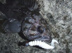 私もノリーズ・プロリグスピン+ベイトブレス・ベタンコカーリーテイル3”のスイミングパターンでアブラコ(アイナメ)、バークレイ・パルスワーム4インチのホワイトでクロソイが釣れました!