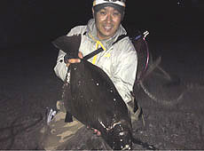 終業後久しぶりに鮃狙いで出撃! 予定してたポイントはうねり強くて断念 … 。 今年は相性が悪いポイントでスタート。 潮がガンガン効いていていい感じ!ジグを中心にキャストしまくり。 ボトムに変化のある気がしたあたりでガツン!!ドラグがジーー !!スポッ・・・抜けた・・・(-"-;) 今のはなんだったんだ??