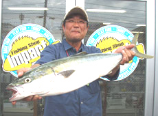 ナブラを見つけて走って追いかけ回し届かないナブラを見ながら近付くまで待つことに。 そして、ナブラが目の前まで!ついに千載一遇のチャンスが!!カルティバ・撃投ジグ65gをキャスト!ゆっくりジャークを入れること3回目にジャーク動作が止まるアタリが!テンション絶好調!!捕獲モードへ突入!!!強烈な引きに耐え、なんとかランディング成功! ショアブリ71cm、3.44kg! やりました!!