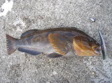 7月23日夕方、南茅部方面へ。午後3時過ぎ、目的の漁港へ到着。まずはアブラコ(アイナメ)を狙うべく港内を3/8 ozタングステンシンカー+バークレイ・バスミノー4インチでラン&ガン!砂地に点在する海草帯をメインに狙うも反応無し・・・。防波堤の先端までラン&ガンしたのでそのままテトラに乗り外海に向かってキャスト!リフト&フォールでボトム付近を探るといい感じにゴツゴツしたポイントを発見!再度バスミノーをトレースすると、リフト中にひったくるようなバイト!フッキングと同時にドラグが出され、暴れまわる南茅部のアブラコ(アイナメ)の引きに大興奮!サイズも40cm位の満足のいくサイズでした。
