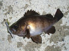 次こそはと意気込みワームをチェンジ。スイミングで狙うと待望のメバルゲット!サイズは12〜13cm。黄金色の綺麗な魚体でした。