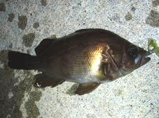 それから目の前にちぎれた海藻が漂い始め苦戦。スイミングで狙うとすぐに引っかかってしまうのでワームをピンテール系のエコギア・ミノーSSにチェンジ。ラインをゴミに引っかけピンポイントでリフト&フォールをすると反応!強烈にロッドを絞り込んだのは20cmを超えるガヤ!2lbラインでのファイトにドキドキしました。