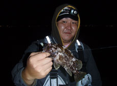9月25日午後3時に渡船開始。アブラコ(アイナメ)の活性が低く、前半はやる気のある魚体を探してラン&ガン。皆さんが苦戦する中、アブラコ(アイナメ)が出ました!!