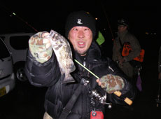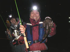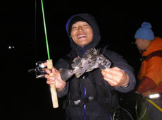 「釣れた〜!!」みんなの歓声が夜の港に響き渡ります!ソイやカジカが釣れ出します!