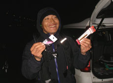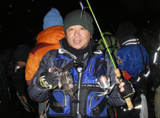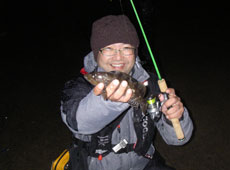 ラウンド1覇者はみのっちさん!!エコギア・グラスミノーでカジカ 31cmをゲット!!ブリを釣った時よりも慌てていたとのウワサです。おめでとうございました!!そしてラウンド2がスタート!!ラウンド 1と比べて思うように魚が釣れない中、時折「おーー!!」と歓声が上がり、大物が釣れたとの情報が飛び交います!そしてあっという間にラウンド2が終了・・