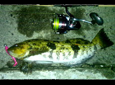7gジグヘッドにシャッド系ワームを装着!ボトムまで落とし、ちょっと早めのスイミング!! ストップ&ゴーの繰り返しでヒット!! ソイとは違うファイト♪ 慎重に寄せて仲間にタモ入れしてもらいました♪