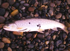 まずはミノーで手前をチェック。一通り探るも反応がなくメタルジグにチェンジ。ささ濁りの状況を確認し岡クラフト・LT−30グリーンピンクをチョイス。キャスト後ミディアムリトリーブで狙うとヒット!金色に輝く魚体が見えアメマスと確信し慎重に寄せランディング。40cm位のアメマスでした!