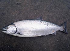 朝4時、釣り場につくと波、潮ともに釣れそうな状況。海を眺めると多少濁り気味なので濁りに強いアカキンカラーの岡クラフト・LT−21をキャスト。しばらくしても反応が無いのでナチュラル系の鮭稚魚グリーンにチェンジするとバイト!がうまくフッキングせず・・・。次は同じナチュラル系のカタクチにチェンジ。デットスローのストップ&ゴーで狙うと再度バイト!今度はうまくフッキング!61cm、2.95kgのサクラマスが釣れました!その後、釣果に満足し終了しました。