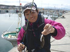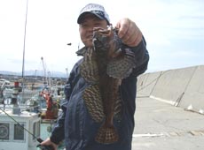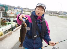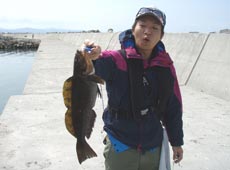 「次は私も・・・」と思い釣れたのは小型のシマゾイ。常吉・コボケ3インチのラメ入りカラーでブロックの隙間を狙うと釣れました。