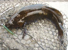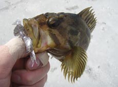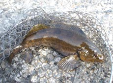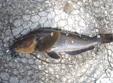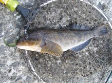 その後はチビガヤ&ショートバイトの連続・・・。苦戦しながらも状況を打破したのはけいすけさん。ライトテキサス+3インチピンテール系ワームのカーブフォールパターンでアブラコ(アイナメ)キャッチ。
