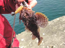 さらにみさちんさんにヒット!これは珍しいオニカジカ(オイランカジカ)体の色がピンク〜オレンジのグラデーションでとても奇麗なカジカでした。