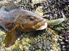 それから30分後・・・またもやたじま君にヒット!40UPアブラコ(アイナメ)ゲット! ! ヒットルアーはサワムラ・ワンナップシャッド5インチ!