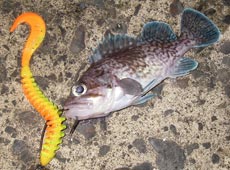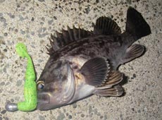 そしてこの後、超大物にラインは掛かりラインブレイクしてしまったSヌマさん・・・惜しかったです・・・ さあ!!気を取り直して自分もビッグクロソイを狙います♪バークレイ・パルスワーム 6”でっ!!!!釣れたのはっ!!!