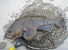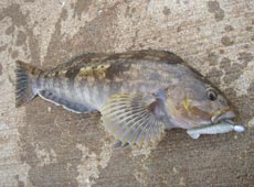 魚が高活性のため、アピールの強いシャッド系ワームにチェンジ。更にラン&ガンするといきなりひったくる強烈なバイト!丸々と太った40 UPアブラコ(アイナメ)ゲット!潮回りが変わりゴミが流れてきたのでポイント移動。