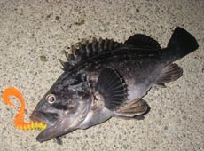 幸先よく良型アブラコ(アイナメ)が釣れます!!バークレイ・4”パルスワームでの釣果♪