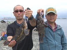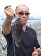 一方、軽めのジグヘッドでスイミングさせていた金子は反応が無いらしく苦戦、14gのテキサスリグでボトムの釣りに変え、28cmのクロソイがヒット!この日はボトム付近が高反応でした。