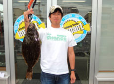 まだ釣れるかもしれないと思いキャストを再開すると、すぐにヒット。さっき釣ったヒラメよりかなり強い引き・・・大物かも。足元まで寄せると、水面には 60 pのタモ枠より明らかに大きなサイズのヒラメが。しかし、ヒラメが上手くタモに納まらず、苦戦しているうちに底に走られフックアウト・・・やってしまった〜久々にヒラメ釣りましたが、釣った喜びよりもバラした悔しさばかりが残る釣行となりました。タモ網をサイズUPして再挑戦しまーす(笑)