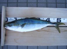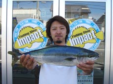 早朝5時過ぎ、サーフに入釣。あちこちで鳥山が見られ釣れそうな状況の中、ヘビーシンキングミノーをキャスト!着水後、リトリーブを始めると3巻き目で「ドスッ」と重量感。根掛かりかと思いロッドを煽ると「グングン!」と生命感!それから寄せては走られを繰り返しあがってきたのは55cm、1.74kgのフクラギサイズのブリ!!凄い引きでした!!!