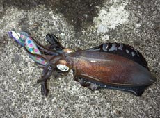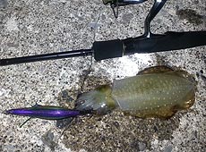 エギは、磯だと3号をガンガン抱いてくるというが、今回はスレ気味な港湾部ってコトもあり弱気に一回り小さな2.5号をチョイス(^皿^) ダートマックスのケイムラので満喫です♪