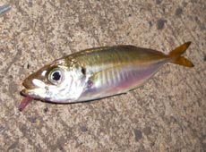 夜7時頃、日本海側の漁港にて釣りスタート !常夜灯の下では「パチャパチャ」とライズしている魚の姿。デコイ・飛びキャロシンカーに1インチのワームをセット。ライズしている周辺にキャストするとヒットしたのはアジ!