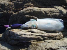 ラン&ガンしていると数杯のアオリイカが手前までチェイス!なかなか抱きつかず躊躇しているのでフォローでエギをサイズダウンし狙うとヒット!ヒットルアーはフラッシュマックス2.5号。