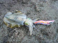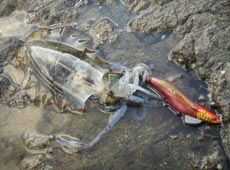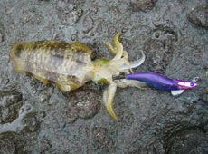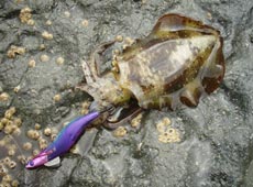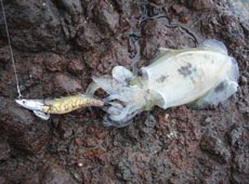 私も最後に数杯釣り上げ終了。一日中アオリイカゲームを楽しみました!!