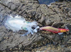 次に移動した磯では更にアベレージサイズが大きくなり、全て胴長15cmオーバー!ファイトも小さなアオリイカとは違いジェット噴射が強烈!!!