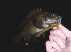 思わぬ珍客に驚きながらも再びラン&ガン!ケーソン際のブレイクラインを丹念に狙うとバイトがありヒット!一匹目と同じ30cmほどのカジカゲット!!