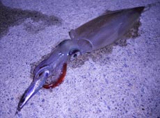 キャストミスで回収しようとすると、グッとゴミが引っかかったような重量感。が、途中で引っ張り始め上げてみるとヤリイカでした!