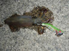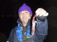 11月16日夜、仕事帰りになかじ〜を拉致して函館港内へ。今シーズン初のマメイカ狙いとあって釣れるかドキドキしながらキャスト開始!ボトム付近まで沈め、リフト&フォールで狙うも反応無し・・・。活性が低いと思い、ゆっくりとロッドでポンプリトリーブすると「クイッ」と小さなバイト!今シーズン初ヒットは小型ながらも嬉しい一杯!ヒットルアーはヨーヅリ・アオリーRS1.8号。