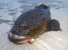 移動後も同じように探ってきますがこちらも沈黙・・・ワームをチェン ジしようとバッグに手を入れて偶然掴んだワームはバークレイ・4”パ ルスワームのイソガニ。たまにはこんな選び方も良いかも!とテキサスリグに装着、底まで落と して今度は大きめのリフト&フォールさせます。何度目かのリフトで 「ググっ」と重量感!しっかりフッキングしてあがってきたのはカジカ!そしてなんとここか ら怒濤の5連続ヒット!全く反応がなかった場所でワームの違いや誘い 方でこれほど釣果が変わってくるとは驚きました。次はアブラコ(アイナメ)で試してみたいと思います!