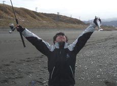 ヒロさんはメタルジグでサクラマスキャッチ!!うれしさのあまり勝利のポーズ!
