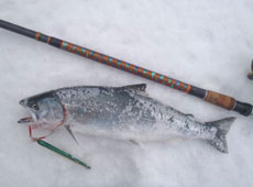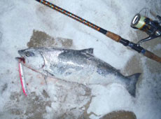 そして、元祖サクラマスハンターとして常に1軍から外せないメタルジグがタックルハウス・P−BOY キャスティング35g。ジグが重さを増すにつれてバラシも増えるんだが、段差フックとかシングルフック2発を装着する事でかなり改善できる。