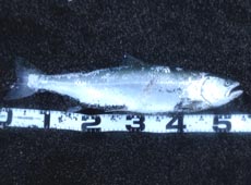 30〜40m程の沖目で突然根掛かりのような重量感。半信半疑でリールを巻くと突然走りだしドラグを出すほどのファイト!手前まで寄せ、ズリ上げると突然暴れだしフックアウト!慌てて手でつかみランディング!苦労の末ゲットしたのは55cm、1.68kgのサクラマス!サイズ以上にファイトが強烈でした!