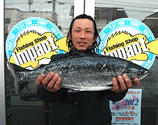遠投してデットスローで泳がせてきた岡クラフト・LT35にヒット!ランディングすると60cm近いサクラマスでした。