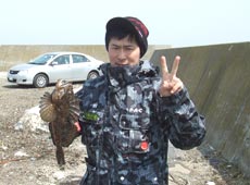 その後、カジカは釣れるのですが、本命のアブラコが釣れず・・・。気温が上がり暖かくなった一時頃、同僚のポストマン櫻田が待望のアブラコキャッチ!サイズは37cm!ヒットルアーはガルプSW・パルスワーム4インチ。この1匹で満足し終了しました。