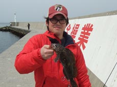 午前10時半頃、アブラコを狙い噴火湾方面の漁港で釣りスタート!14gボールシンカーにティムコ・ガルプSW・デビルホッグ3.15インチをセットし沖目にキャスト!ボトムに着底後、ブロックの隙間に落とし込みワームを小さくアクション、時折ステイさせて狙うと北海道ではベロカジカと呼ばれるニジカジカが釣れました!大きさは36cmとなかなかのサイズ!