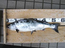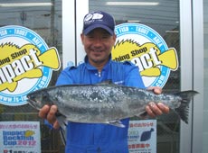5月5日朝4時、磯場にて釣りスタート!釣れそうな雰囲気が漂う中、岡クラフト・LT−35をキャスト!ミディアムリトリーブで狙い続けること30分、沖目でヒット!50cm後半の良型サクラマスをキャッチ!