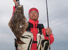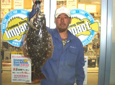この日は、友人が前日にヒラメを出したポイントに3時頃に入り撃ち始めるが間もなく目の前に漁師さんが網を入れ始めたために場所移動・・・次のポイントへはサクラマス狙いのつもりで3人で入るコトに実釣開始後間もなくサクラマスの跳ね♪魚は居るとの確信からテンションが上がるが、いっこうに口を使わないしばらくして友人の一人がアタッた!と そして間もなくもう一人の友人にもアタリが♪状況を聞くと、なにやら怪しい・・・もしやヒラメ?立ち位置を変えての1投目でした もしかして?まさかなと思いつつもジグミノーでストラクチャーの際へと遠投してのカウントダウン・・・中層まで沈めてからのミディアムリトリーブ・・・するとハンドル10回転ほど巻いたあたりでゴグン!とバイト♪ 今年の初物をいただきました(^^)v サイズUP頑張り鱒