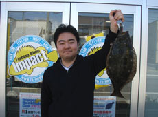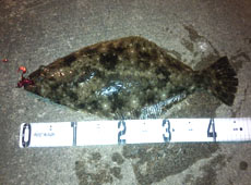 5月18日夜9時頃、釣りスタート!1ozバレットシンカーにバークレイ・4”パルスワーム・チェリーキャンディーシードをセット。2時間ほど狙うも釣れたのは30cm位のソイ1匹のみ・・・。 休憩後、ライトタックルにチェンジし、気分転換にソイ釣り。1時間ほどで30cmのソイが2匹釣れました!気分転換できたので再びヒラメタックルに持ち替え2投目、リフト&フォールで狙っていると、「コツコツ」とショートバイト。ラインを緩め、少し待ってからリールを巻くと重さがありフッキング!47.5cmのヒラメキャッチ!シーズン開幕早々のヒットで、幸先の良いスタートを切ることができました!