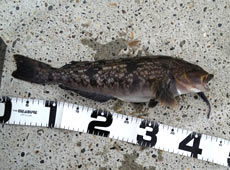 インパクト・ロックフィッシュカップR1を27cmアブラコ(アイナメ)一匹のウエインと不完全燃焼で終ったので、大会終了後にあらためてチョイロック。 エコギア・イワシヘッド14gにエコギア・ミノーMのカタクチ(ケイムラチューン)をリグってボトムをてろてろする事3投目に40cmアブラコ(アイナメ)がヒット!