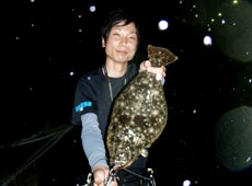 ヒラメ狙いで日本海へ、まずはディープミノーでランガンすると3投目で反応が!上がってきたのは25cmのソゲサイズ。サイズアップを目指し、さらにカラーローテーションをしながらランガンすると20cmとサイズダウン(笑)その後もひたすらキャストを繰り返しましたが反応が無くなり、最後にワームで探ろうと14gのテキサスリグをキャスト。リフト&フォールで誘ってくると、カーブフォール中に「ゴツンッ」と今までにない強いバイト!手前まで寄せてタモ入れしようとすると勢い良くドラグを出され・・・再度寄せてランディング成功!42.5cmの今期初ヒラメをゲットしました!