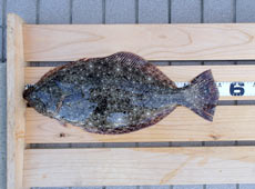 早朝5:45、ヒラメ狙いで釣りをスタート!アイマ・魚道ヘビーサーファー90でボトムから1mくらいをストップ&ゴーで狙いうと、55cm、1.81kgのヒラメがヒット!さらにキャストを繰り返し40cmクラスを1枚追加!開始30分足らずで2枚のヒラメをゲットしました!