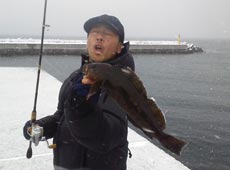 その後、反応が無なりワームをミノー S にチェンジ。じっくりと探ると「モソッ」とかすかなバイト!2匹目も35cm程のアブラコ(アイナメ)!