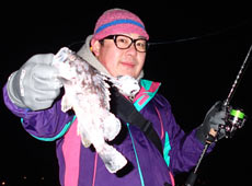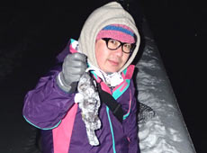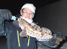 そんな中・・・少し離れていた場所からぶぅたろうくんの声が・・・「暗くて良くわからないけど・・・重くて抜けない・・・タモ!!!」なんとあがってきたのはアブラコ(アイナメ)43cm!この時期?この場所?この時間?しかもナイスサイズ!驚きと喜びで3人とも笑いが止まりません!ヒットルアーはバークレイ・Tテールミノー3.5”のテキサスリグ!笑顔の良い写真いただきました!