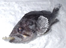 私はジグヘッドで浮いている魚がいないかチェックしていると数回目のフォール中「ゴンッ」と気持ちよいアタリ!この瞬間がたまりません!なかなかの引きを見せたクロソイがヒット!エクストリームオーロラ・シンゾーベイト+シンゾーヘッドのトゥイッチ&フォール!