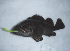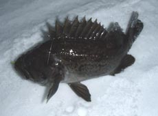 仕事が帰りに近所の埠頭で短時間勝負!一発必中ネコリグにワームはバークレイ・パワーミノー3インチ。ボトムでちょんちょんとアクションを加えステイ・・・「コッ」とバイトがありヒット!15cmほどのクロソイゲット!